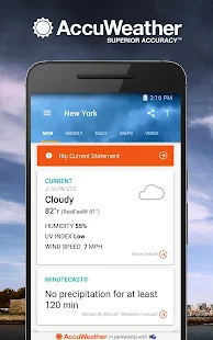 Stay connected to the latest weather conditions with AccuWeather. Now compatible with Android Wear ™, this free application introduces the new AccuWeather MinuteCast®, the leading minute+to+minute precipitation forecast, hyper+localized to your exact address. AccuWeather offers the same Superior Accuracy ™ and a great experience on all smartphones and tablets with Android and Android Wear.